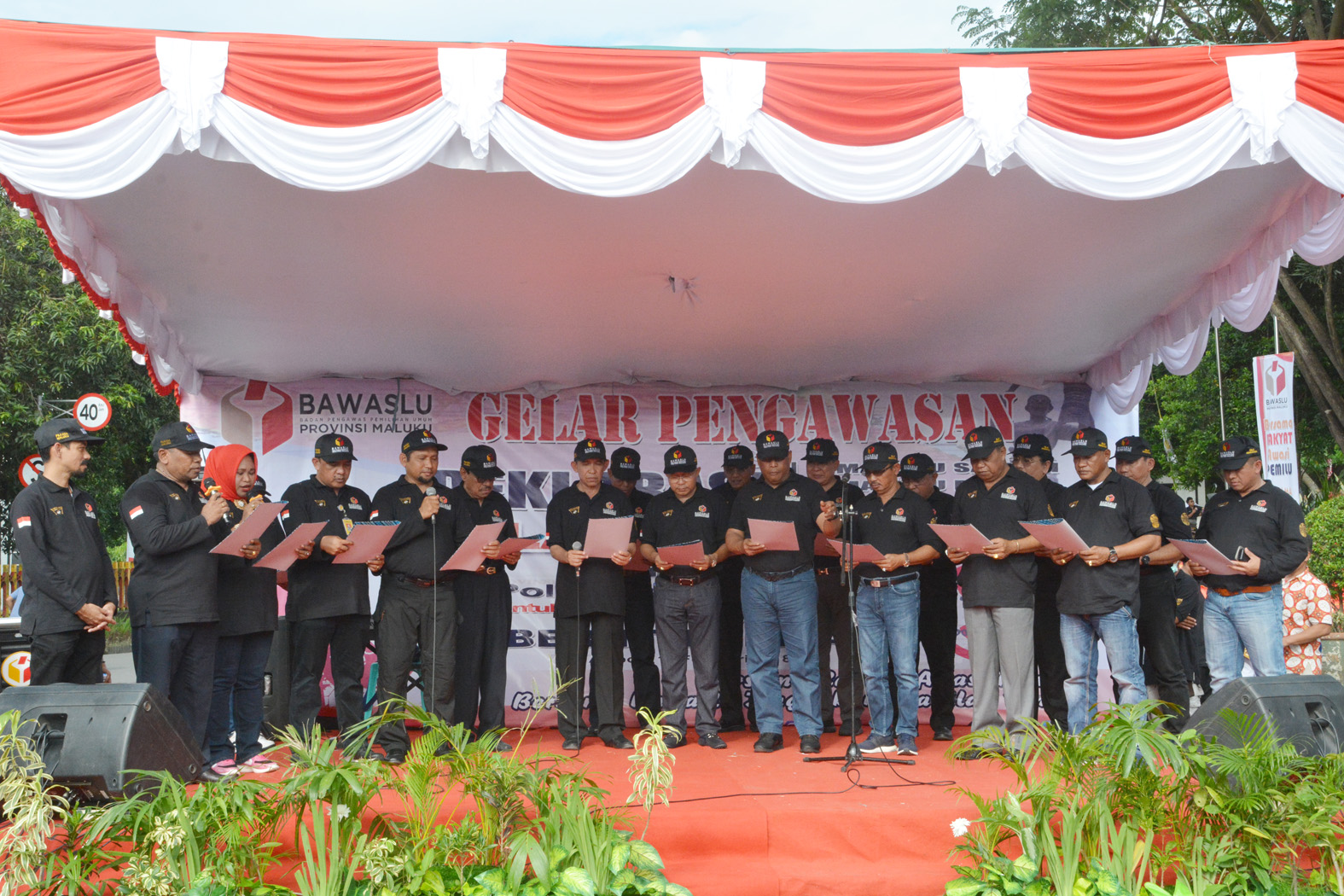 “Dengan tuntunan dan rahmat Tuhan yang Maha Esa, Bawaslu Provinsi Maluku bersama segenap masyarakat Maluku dalam semangat orang basudara menyatakan komitmen untuk mengawal dan mensukseskan penyelenggaraan Pemilihan Gubernur, Bupati dan Walikota 27 Juni 2018 yang aman, damai, demokratis dan berintegritas demi terwujudnya keutuhan dan kesejahteraan Maluku.”