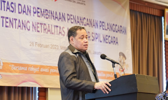 Jakarta, Badan Pengawas Pemilihan Umum - Anggota Bawaslu Herwyn JH Malonda memaparkan, aparatur sipil negara (ASN) sebagai pelayan publik dan pengayom masyarakat menjaga marwah agar tidak terpengaruh pada kepentingan orang perorang atau kelompok tertentu dalam kontestasi politik. Menurutnya kewenangan ASN sangat rentan dipengaruhi oleh calon peserta pemilu.