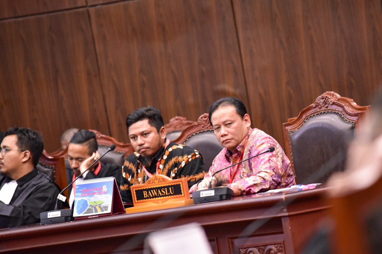 Ketua Bawaslu Abhan mendampingi Anggota Bawaslu Papua Barat Muhammad Nazil Hilmie saat mendengarkan pembacaan putusan sengketa hasil pileg di Gedung MK, Kamis 8 Agustus 2019/Foto: Andrian Habibi