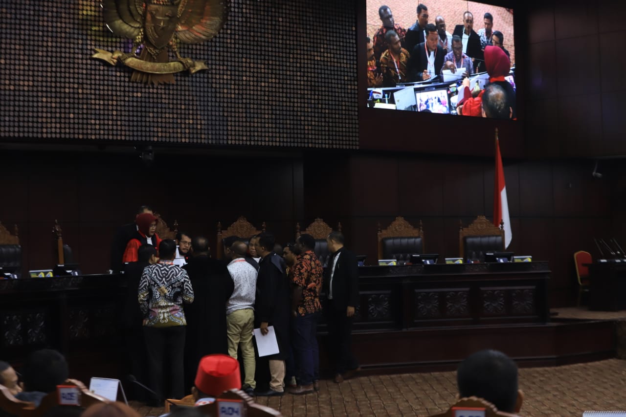 Hakim MK Arief Hidayat lalu meminta kedua data tersebut untuk dilakukan penyandingan. Pihak pemohon Abdullah Manaray serta pihak KPU yang juga diminta menyaksikan penyandingan tersebut.