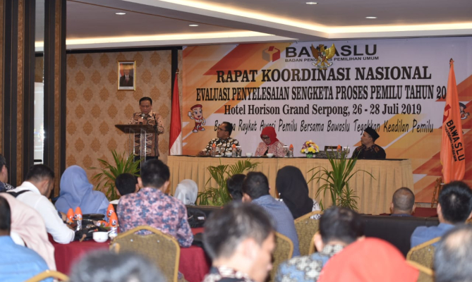 "Tidak benar jika putusan administrasi Bawaslu tidak memiliki kepastian hukum," tegasnya saat memberikan pengarahan dalam acara penutupan Rapat Koordinasi Nasional Evaluasi Penyelesaian Sengketa Proses Pemilu 2019 di Serpong, Banten, Sabtu (27/7/2019) malam.