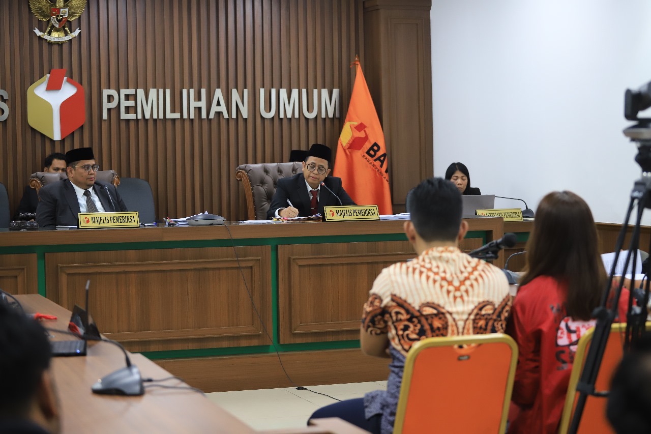 Suasana Persidangan dengan laporan dugaan pelanggaran administratif nomor 006/LP/ADM.PL/00.00/IX/2024 di Ruang Sidang Bawaslu, Senin (30/9/2024).