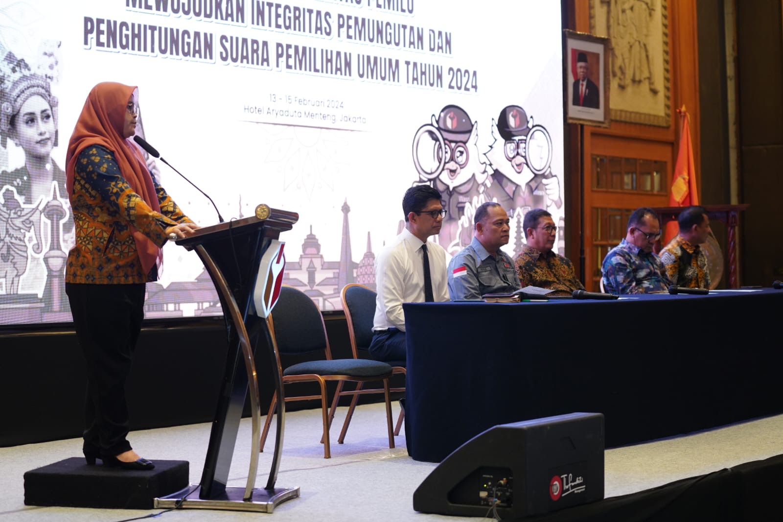 Anggota Bawaslu Lolly Suhenty memberikan sambutan dalam Konsolidasi Pemantau Pemilu di Jakarta, Selasa, (13/2/2024)/foto: Publikasi dan Pemberitaan Bawaslu.