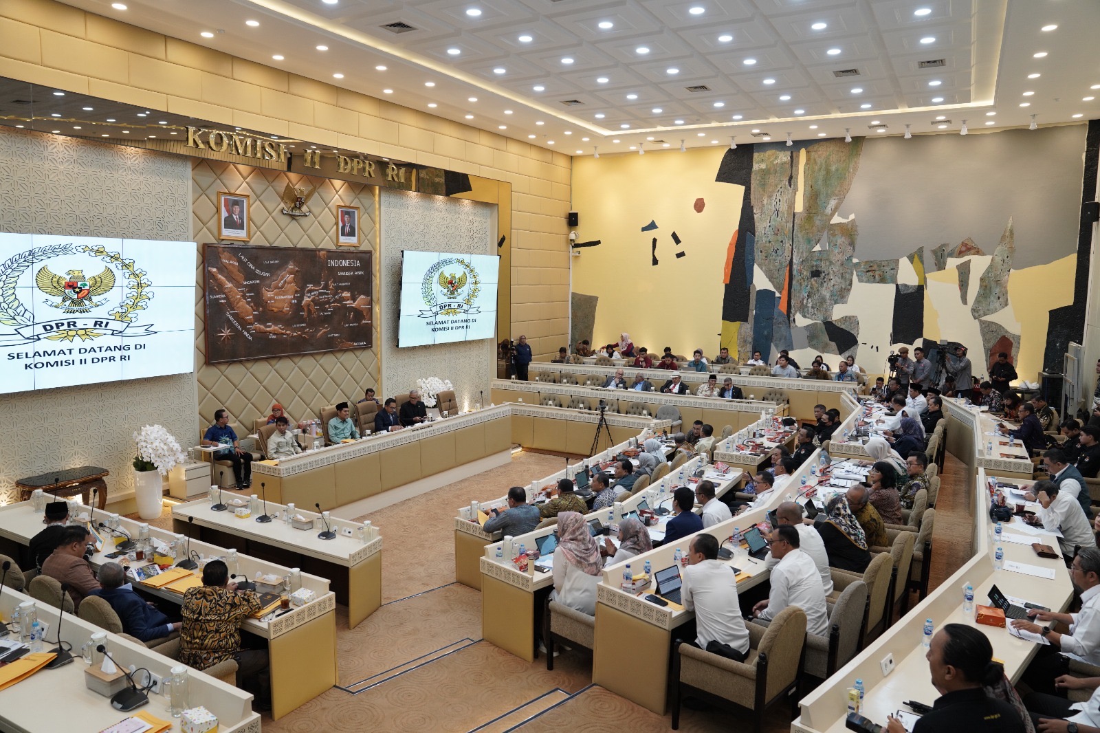 Suasana Rapat Dengar Pendapat (RDP) di ruang rapat Komisi II DPR RI, Rabu (12/02/2025).