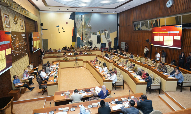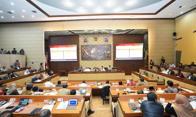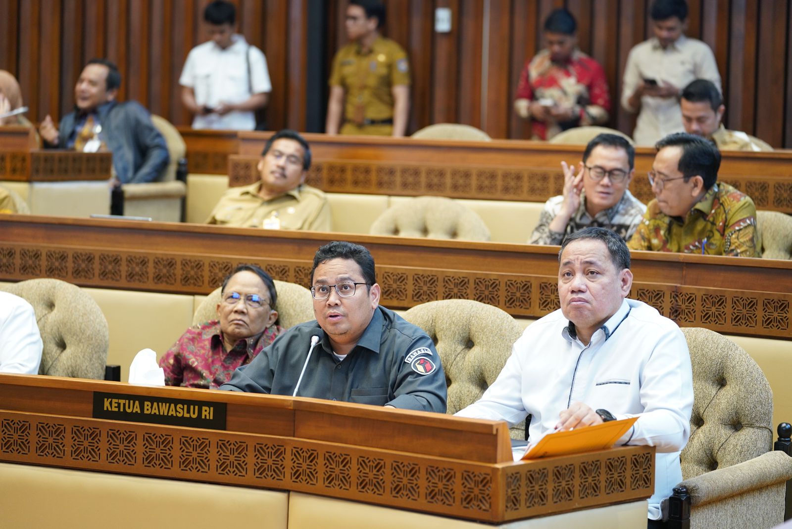 Jakarta, Badan Pengawas Pemilihan Umum- Bawaslu menyampaikan evalusi hasil kerja pencegahan, pengawasan, dan penindakan pelanggaran Pemilu 2024 kepada Komisi II DPR RI. Evaluasi disampaikan Bawaslu dalam forum rapat kerja bersama DPR RI, pemerintah, KPU, dan DKPP, di Gedung DPR/MPR RI Senayan, Jakarta, Senin (25/3/2024).