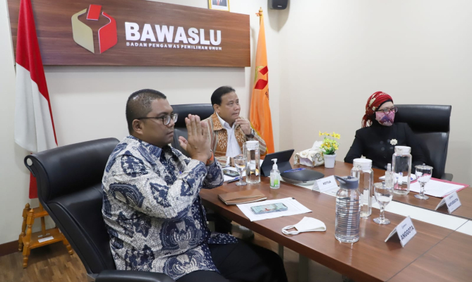 Jakarta, Badan Pengawas Pemilihan Umum- Ketua Bawaslu Abhan mempresentasikan inovasi dan kolaborasi dalam bentuk video terkait keterbukaan informasi publik yang telah dilakukan Bawaslu kepada Komisi Informasi Pusat (KIP). Presentasi ini merupakan pendalaman dan penjelasan video yang telah dikirimkan dalam rangka monitoring dan evaluasi keterbukaan informasi badan publik 2021.