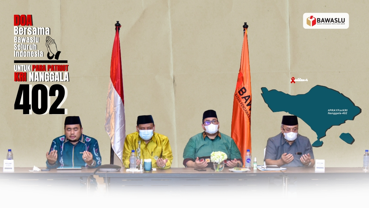 Jakarta, Badan Pengawas Pemilihan Umum - Bawaslu menggelar doa bersama untuk korban tenggelamnya kapal KRI Nanggala 402. Acara doa bersama ini diikuti oleh jajaran Bawaslu se-Indonesia melalui daring (dalam jaringan) yang dipimpin Anggota Bawaslu Mochammad Afifuddin, Senin (26/4/2021) malam.