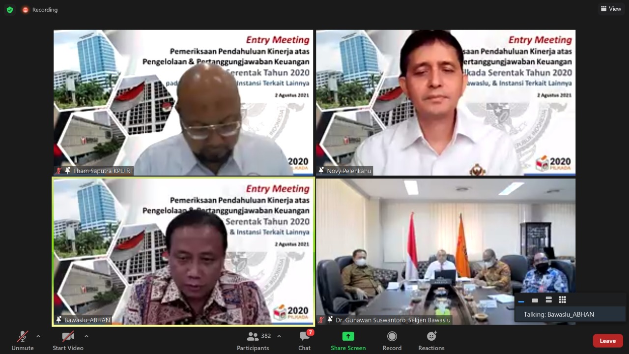 Rapat daring entry meeting bersama BPK, Senin (2/8/2021)/foto: tangkapan layar zoom