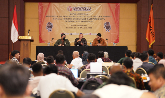 "Bawaslu tidak dalam kapasitas membantah atau menerima (dalil permohonan). Bawaslu hanya dalam kapasitas memberikan keterangan terhadap situasi yang terjadi di wilayah (Bawaslu) masing-masing sesuai dengan dalil pemohon, tidak lebih dari itu," cetus Totok dalam Rapat Sosialisasi Kehumasan Dalam Pemberian Keterangan Tertulis Bawaslu, Bawaslu Provinsi, dan Bawaslu Kabupaten/Kota di MK, di Jakarta, Minggu (28/4/2024).