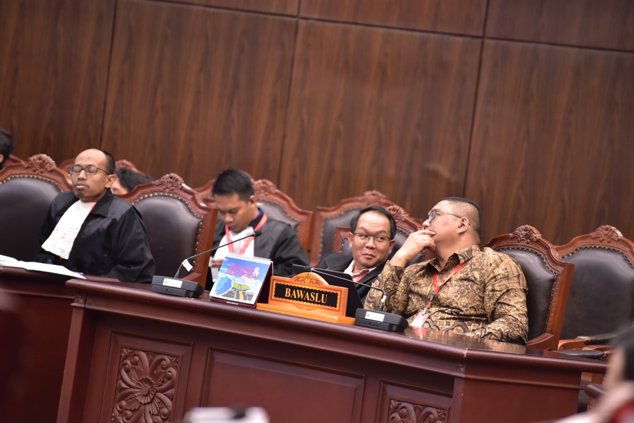 Anggota Bawaslu Sumatra Selatan Junaidi didampingi Anggota Bawaslu Fritz Edward Siregar di Ruang Sidang MK, Jakarta, Rabu7 Agustus 2019/Foto: Andrian Habibi
