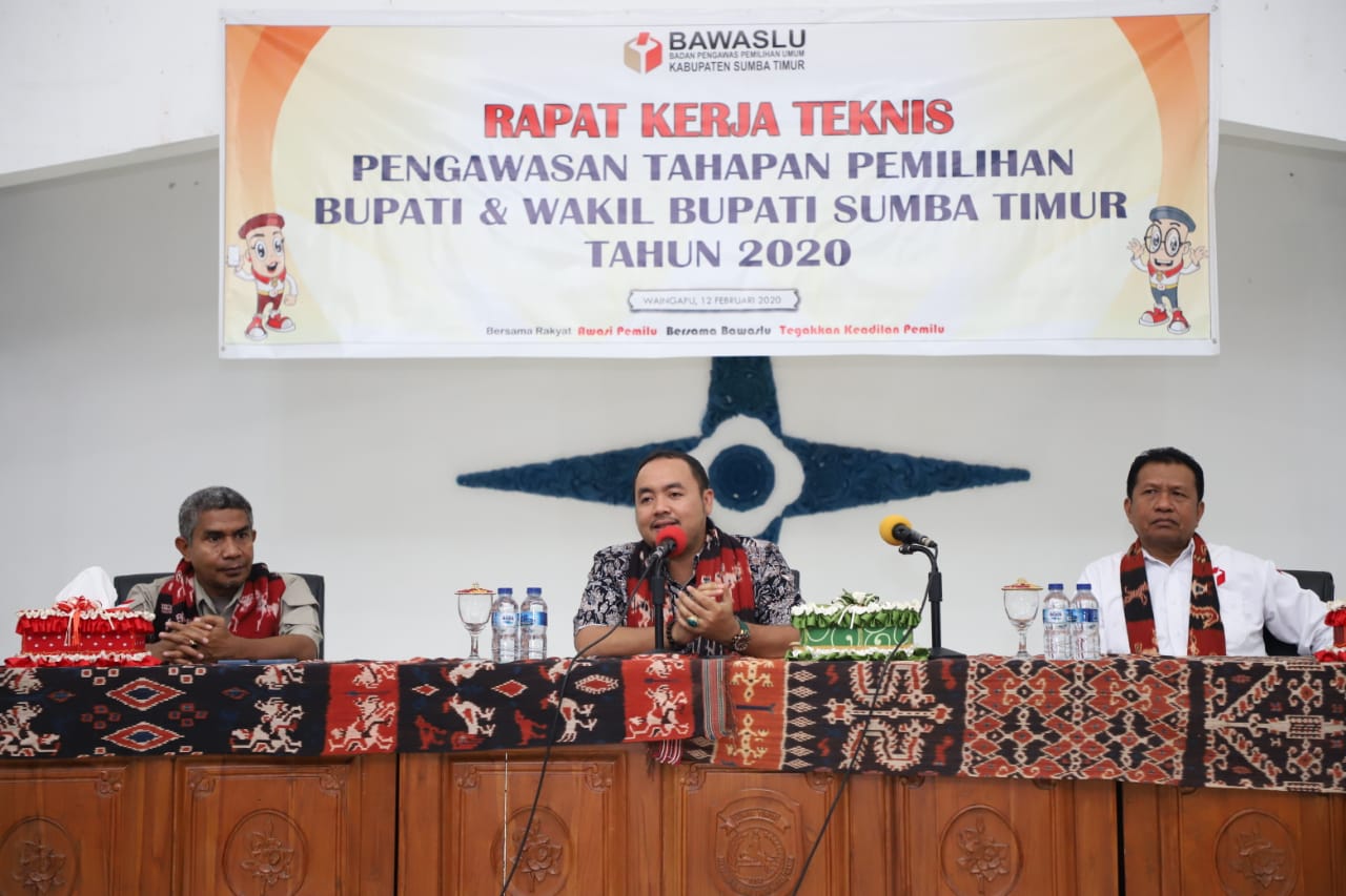 Anggota Bawaslu Mochammad Afifuddin memberikan arahan dalam Rakernis Pengawasan Tahapan Pemilihan Bupati dan Wakil Bupati Sumba Timur Tahun 2020, Jumat (14/2/2020). Foto : Hendi Purnawan