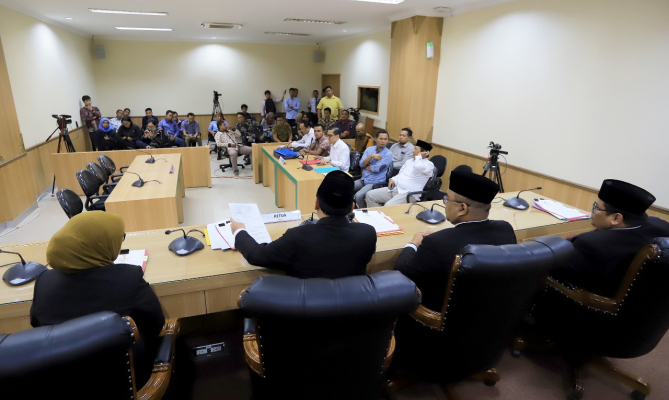 Suasana persidangan putusan pendahuluan di ruang sidang utama, lantai 1 Gedung Bawaslu, Jakarta, Selasa 21 Mei 2019/Foto: Nurisman Tag Abhan sidang putusan Bawaslu bawaslu terkini Fritz Edward Siregar