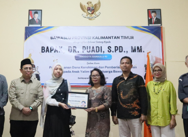 Balikpapan, Badan Pengawas Pemilihan Umum – Anggota Bawaslu Puadi menyerahkan dana kerahiman dan santunan kepada anak yatim piatu dalam kunjungan kerjanya di Kantor Bawaslu Kota Balikpapan. Kegiatan ini menjadi momentum penguatan solidaritas internal sekaligus kepedulian sosial lembaga pengawas pemilu.