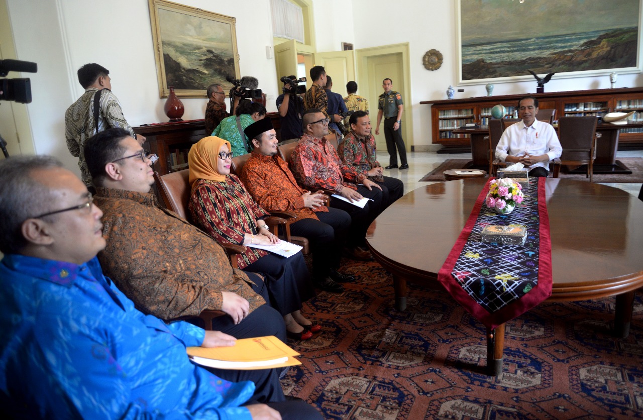 Presiden Republik Indonesia, Joko Widodo menyambut Ketua, Anggota dan Sekretaris Jenderal Bawaslu RI bertempat di Istana Bogor Selasa (24/7/2018).