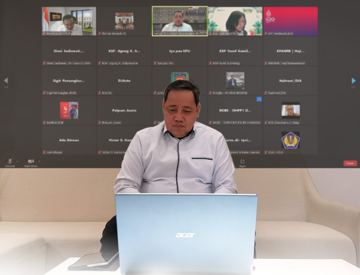 Angggota Bawaslu Herwyn JH Malonda saat mengikuti Rapat Koordinasi terkait Pemilu dan Pilkada di DOB dan IKN, yang digelar Kantor Staf Presiden (KSP) secara daring, Kamis, (14/07/2021).