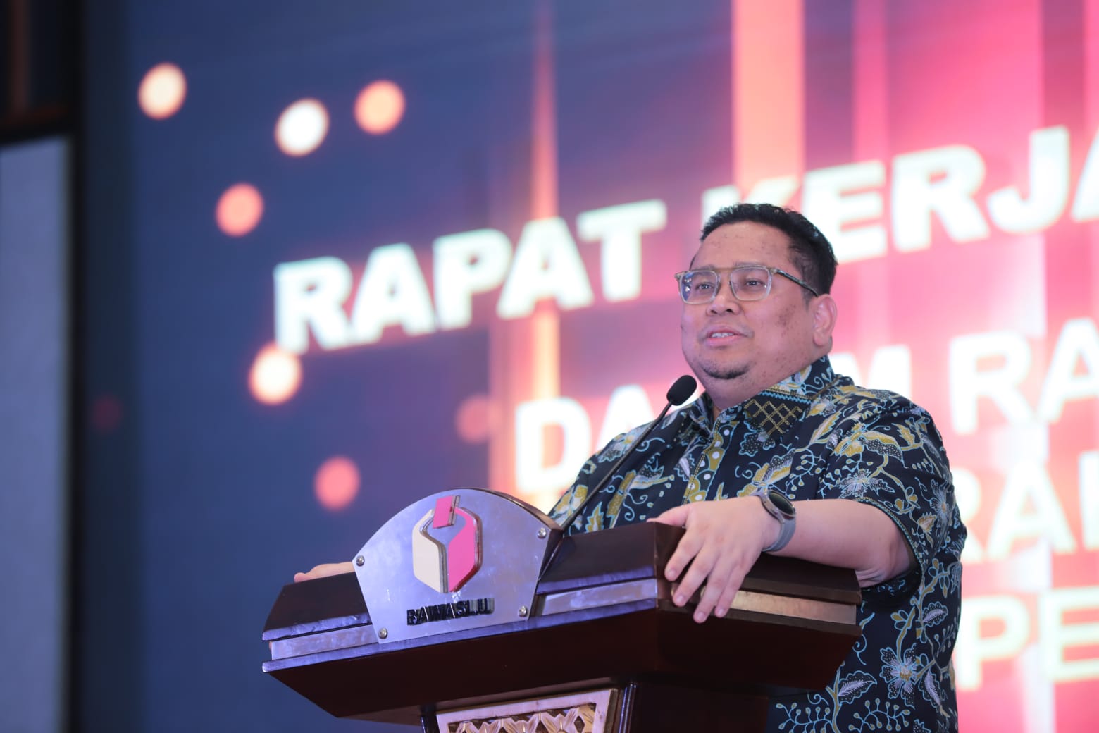 Ketua Bawaslu Rahmat Bagja saat memberikan arahan dalam Rapat Kerja Teknis Penataan Dapil dan Alokasi Kursi di Jakarta Senin (19/12/2022) malam di Jakarta/Foto: Pemberitaan dan Publikasi Bawaslu RI