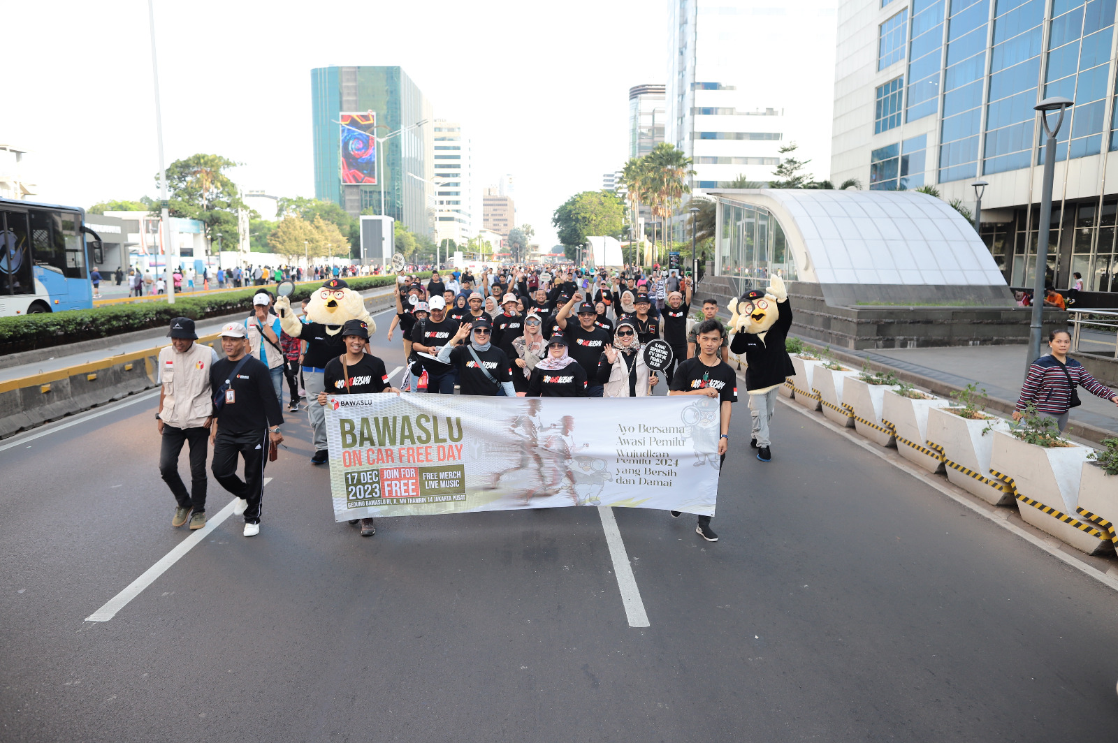 Bawaslu on Car Freeday di Jalan MH Thamrin, Minggu (17/12/2023).