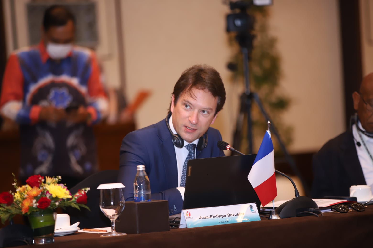 President of the Scientific Commite of The Global Network On Electoral Justice (GNEJ) Jean-Philippe Derosier menyampaikan paparan dalam Program Of The Asia Regional Event di Nusa Dua, Bali, Kamis (31/3/2022) yang dilaksankan secara hybrid. Foto: Pemberitaan dan Publikasi Bawaslu RI
