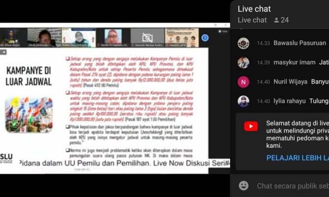 "Apabila norma tersebut dimaknai sebagai delik materil, sudah pasti ini akan jadi celah hukum, ketika ada tindakan serupa maka tidak akan bisa diproses," ujar Dewi saat menjadi pembicara kunci dalam diskusi penegakkan hukum pemilu yang diselenggarakan oleh Bawaslu Provinsi Jawa Timur tersebut, bertema 'Problematika Pasal-Pasal Pidana Dalam Undang-Undang Pemilu/Pemilihan', Kamis (2/12/2021) secara daring (dalam jaringan).