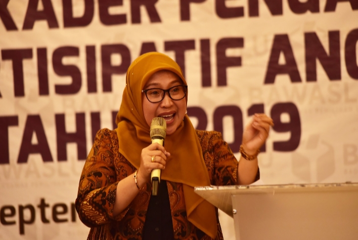 Anggota Bawaslu Ratna Dewi Pettalolo saat menjadi pembicara Sekolah Kader Pengawasan Partisipatif Angkatan Kedua, Senin (7/10/2019) di Bogor, Jawa Barat/Foto: Nurisman