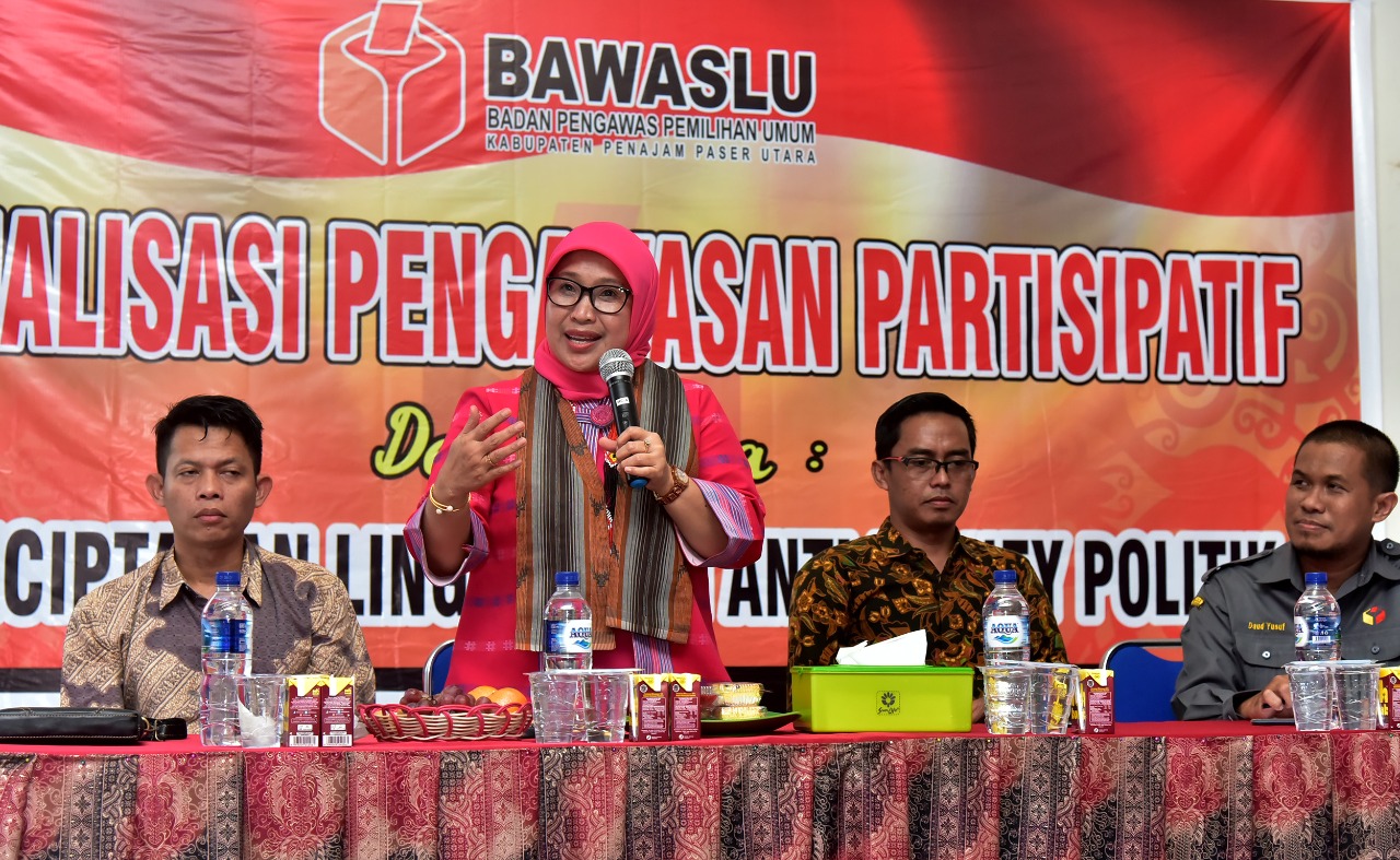 Anggota Bawaslu Ratna Dewi Pettalolo saat menjadi narasumber dalam Rapat Kegiatan Sosialisasi Pengawasan Partisipatif dengan tema Menciptakan Lingkungan Anti Money Politik di Panajam Paser Utara, Balikpapan, Kalimantan Timur, Selasa (22/10/2019) malam/Foto: Nurisman