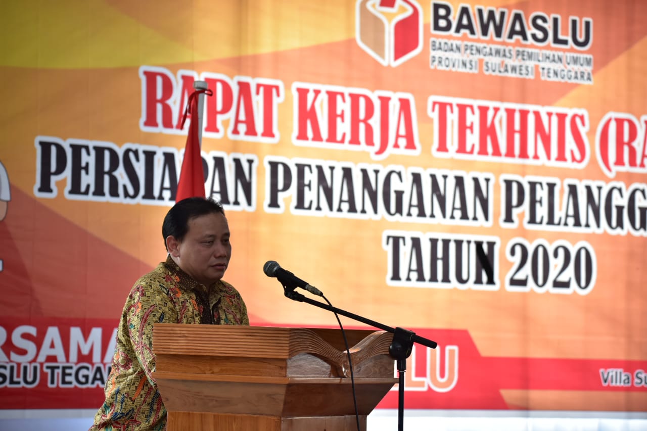 Baubau, Badan Pengawas Pemilihan Umum - Ketua Bawaslu Abhan memberikan jurus antisipasi pelanggaran dalam mengawasi Pilkada Serentak 2020. Hal ini disampaikannya saat membuka Rapat Kerja Teknis (Rakernis) Penanganan Pelanggaran Pilkada Tahun 2020, Sabtu (4/1/2020) di Kota Baubau, Sulawesi Tenggara (Sultra).