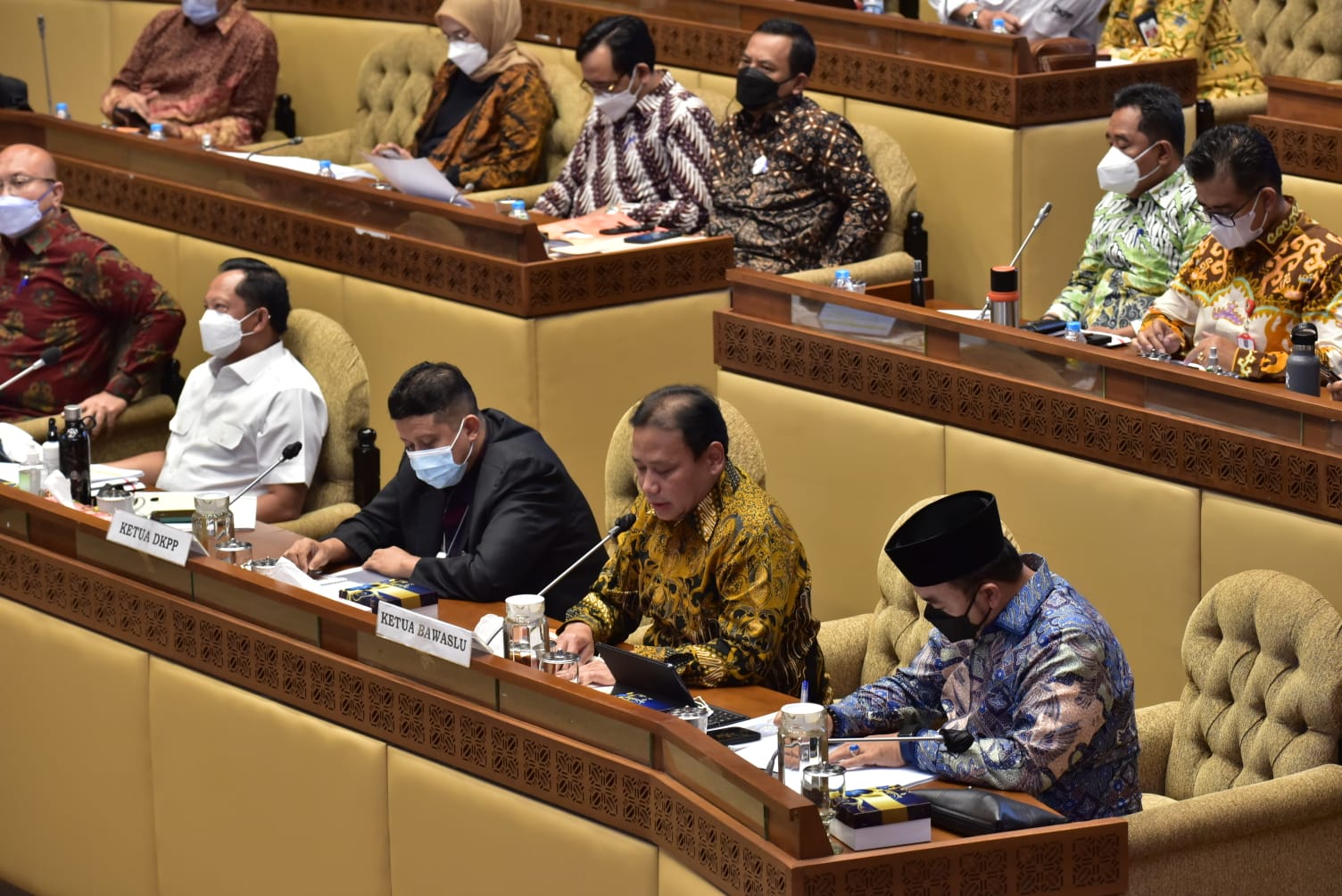 Jakarta, Badan Pengawas Pemilihan Umum - Ketua Bawaslu Abhan membeberkan berbagai program kerja dan usulan persiapan pengawasan Pemilu dan Pilkada Serentak 2024 dalam Rapat Kerja (Raker) sekaligus Rapat Dengar Pendapat (RDP) Komisi II DPR RI dengan Kementerian Dalam Negeri (Kemendagri), KPU, Bawaslu, dan DKPP, Kamis (16/9/2021).