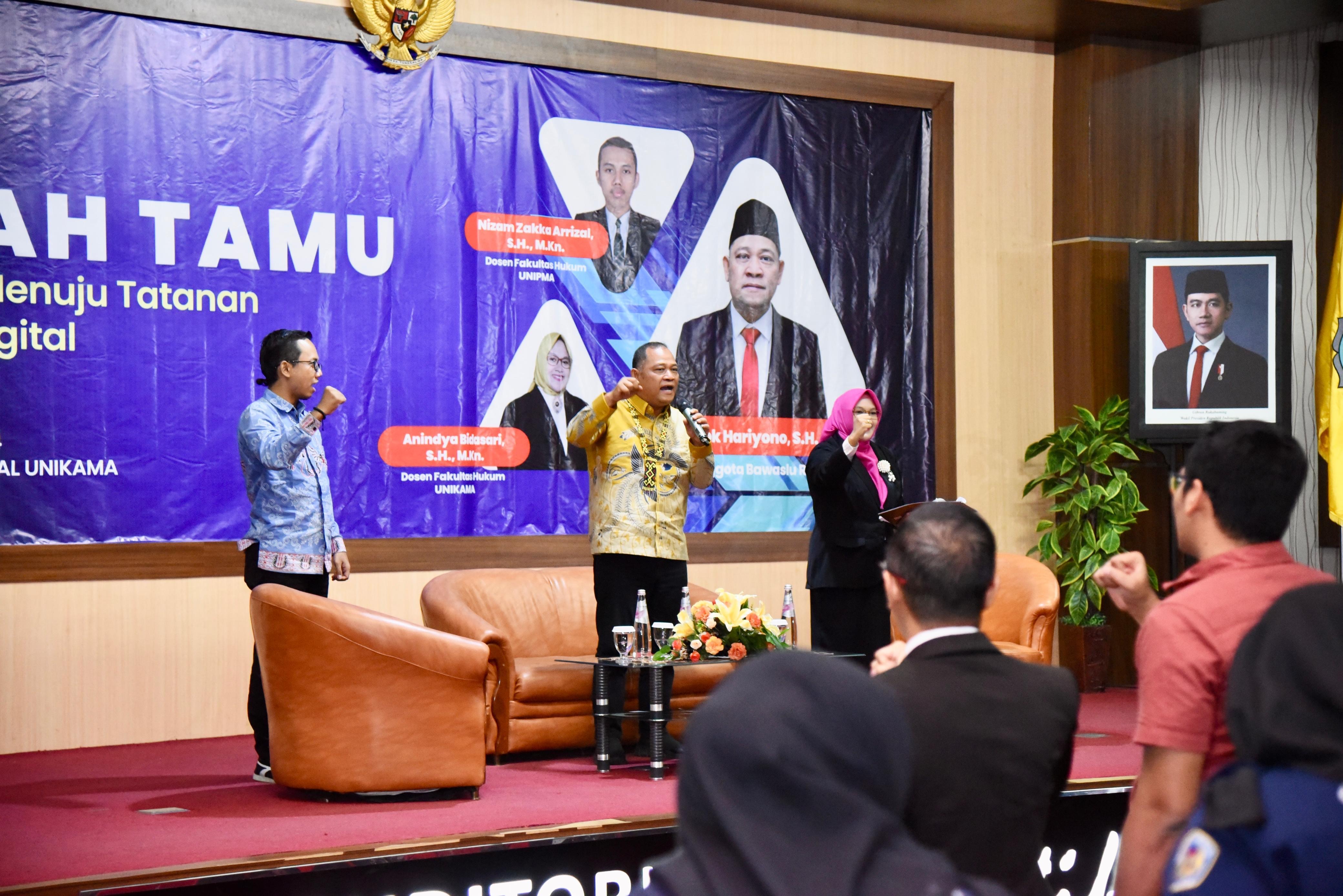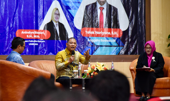 Anggota Bawaslu Totok Hariyono (batik kuning) menjadi pembicara dalam Kuliah Tamu di Universitas PGRI Kanjuruhan Malang, Jawa Timur, Jumat (22/11/2024)/foto: Publikasi dan Pemberitaan Bawaslu.