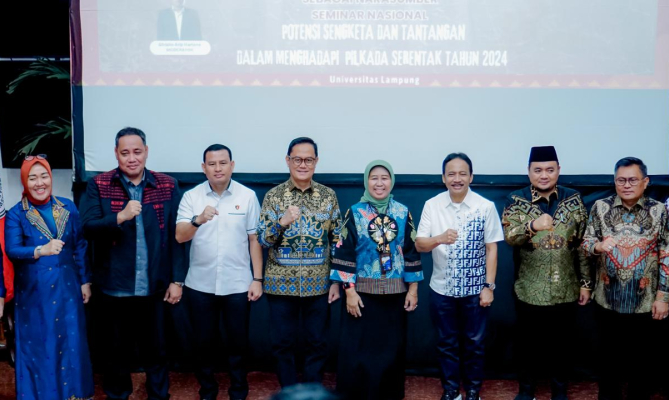Bandar Lampung, Badan Pengawas Pemilihan Umum- Anggota Bawaslu Herwyn JH Malonda menjelaskan perbedaan sengketa proses pemilu dan sengketa proses pemilihan (Pilkada) saat Seminar Nasional BEM Fakultas Hukum Universitas Lampung, Sabtu (13/7/2024). Menurutnya, penting bagi masyarakat dan mahasiswa mengetahui perbedaan tata cara penyelesaian sengketa proses pemilu dan pemilihan.