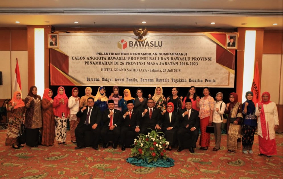 Jakarta, Badan Pengawas Pemilihan Umum – Ketua Badan Pengawas Pemilihan Umum (Bawaslu) Abhan melantik 81 orang anggota Bawaslu Provinsi, Rabu (25/7/2018). Dengan pelantikan tersebut, persentase jumlah anggota perempuan pada Bawaslu Provinsi meningkat menjadi 22 persen dari sebelumnya 19 persen.