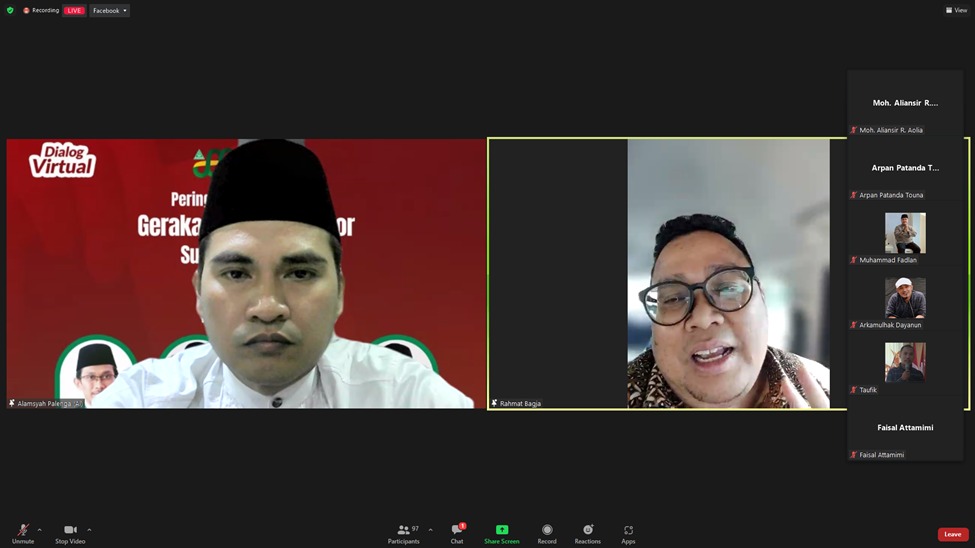 Ketua Bawaslu Rahmat Bagja (kanan) menjadi narasumber dalam diskusi virtual dengan tema Peran dan Tantangan Pemuda Ansor dalam Mewujudkan Pemilu dan Demokrasi Berkualitas, Selasa (26/4/2022),/foto: Publikasi dan Pemberitaan Bawaslu.