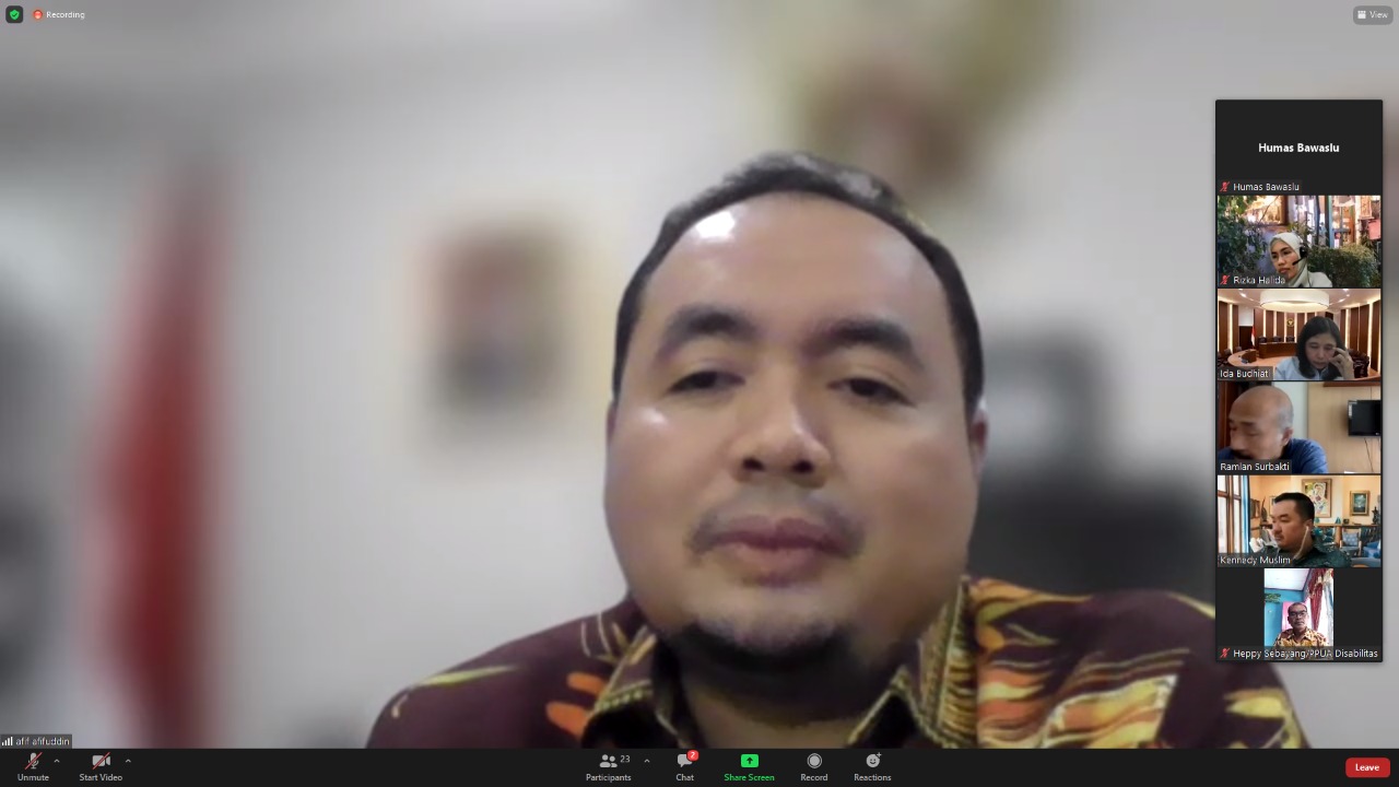 Dalam diskusi tersebut, turut dihadiri Komisioner DKPP Ida Budiarti, Anggota Dewan Pembina Perludem Titi Anggraini, PPDI Gufron Sakaril, Perkumpulan Jiwa Sehat Yeni Rosa, SAFENet Damar Julianto, Puskapol UI Hurriyah, PPUA Disabilitas Happy Sebayang, dan KoDe Inisiatif Violla Reininda.
