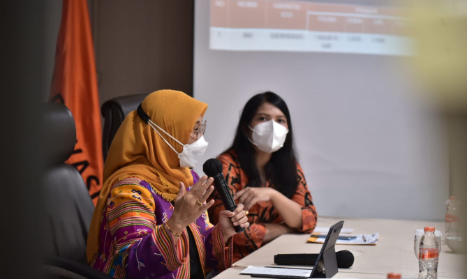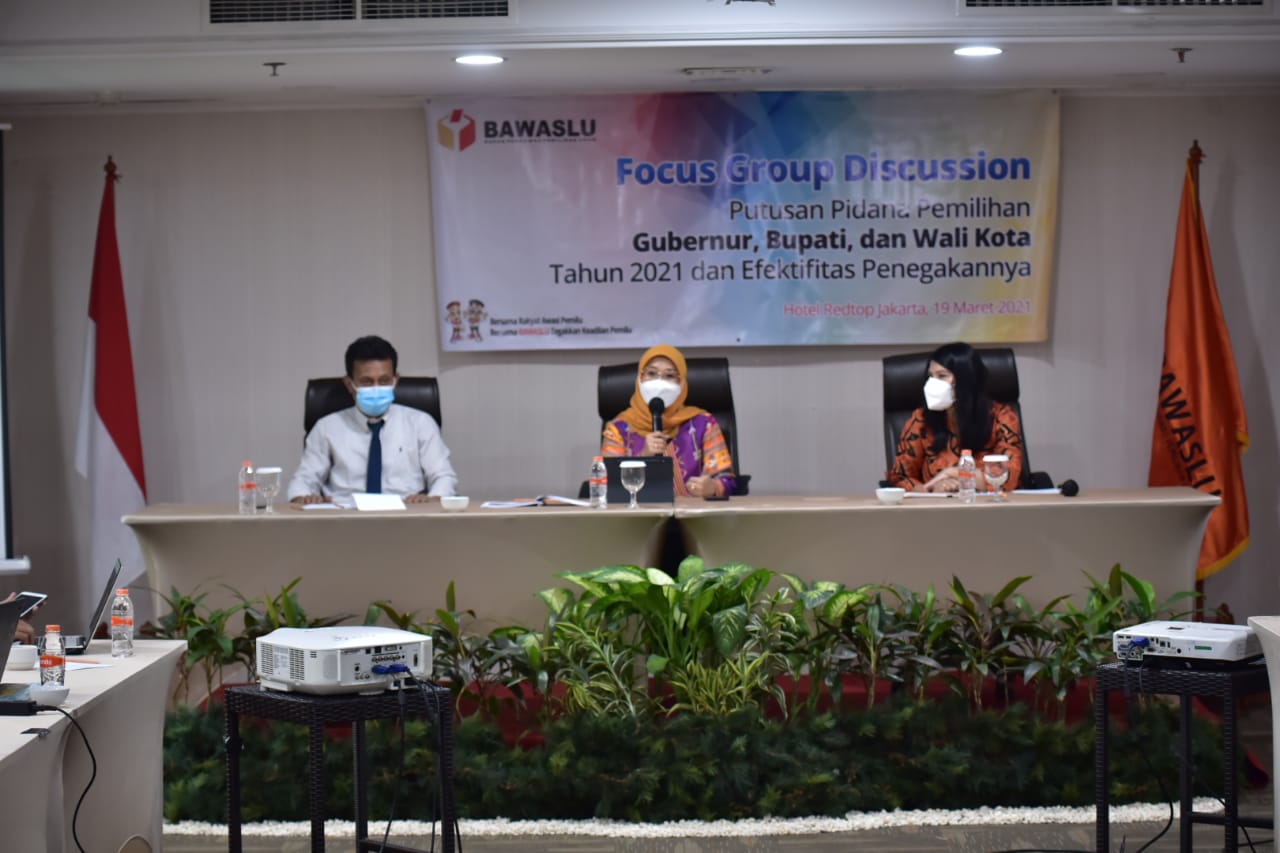 Anggota Bawaslu Ratna Dewi Pettalolo (tengah) dalam focus group discussion (FGD) bertema Putusan Pidana Pemilihan Gubernur, Bupati, dan Wali Kota Tahun 2021 dan Efektifitas Penegakannya yang berlangsung di Jakarta, Jumat 19 Maret 2021/Foto: Humas Bawaslu RI