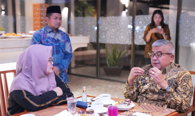 Suasana pertemuan Anggota Bawaslu Lolly Suhenty (dua dari kanan) melakukan diskusi dengan Penjabat Gubernur Aceh Bustami Hamzah di Aceh, Rabu (17/7/2024)/foto:Publikasi dan Pemberitaan Bawaslu.