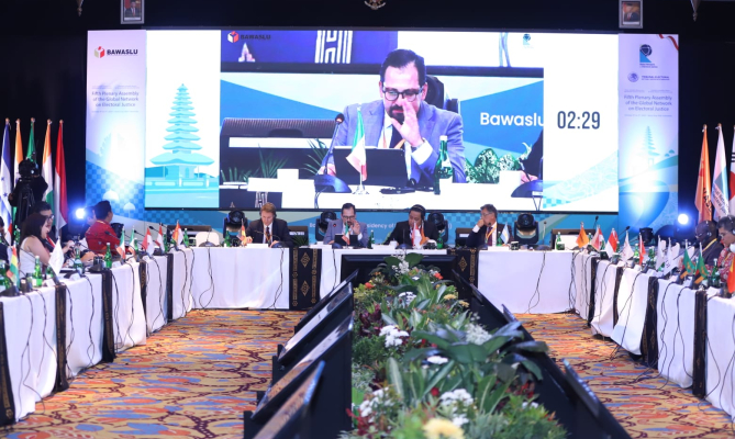 Bali, Badan Pengawas Pemilihan Umum - Bawaslu berbagi pengalaman dalam menangani disinformasi dalam proses pemilu dan pemilihan saat pleno dua dalam pleno dua acara Sidang Pleno Kelima (Fifth Plenary Assembly) Global Network on Electoral Justice (GNEJ) di Bali. Anggota Bawaslu Herwyn J.H. Malonda menjelaskan lebih dari 50 persen hoaks pada Januari 2018 - Februari 2019 di Indonesia bertema politik.