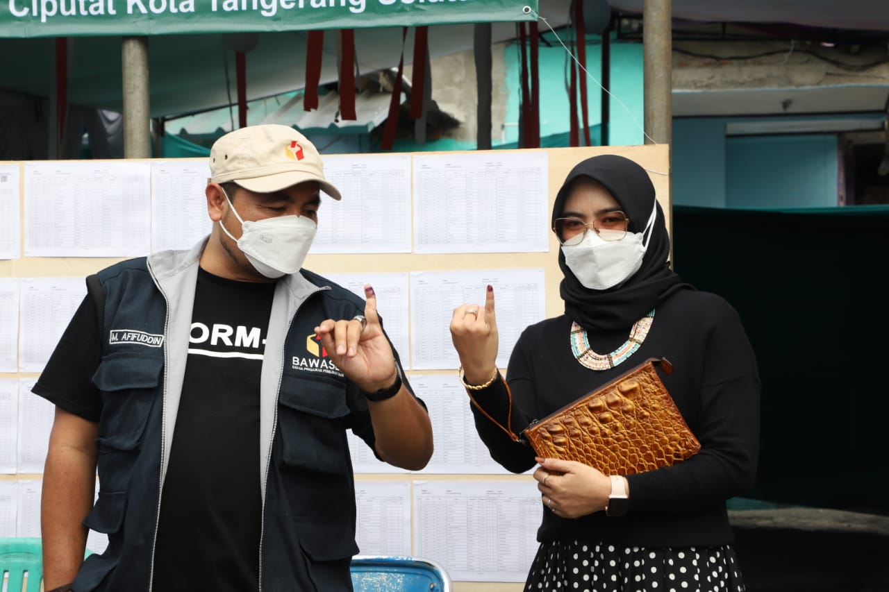 Tangerang Selatan, Badan Pengawas Pemilihan Umum - Anggota Bawaslu Mochammad Afiffuddin telah menggunakan hak pilihnya dalam Pemilihan Walikota/Wakil Walikota (Pilwakot) Tangerang Selatan. Bersama sang istri Nur Arofah, dia mencoblos di TPS 22, Kelurahan Cipayung, Kecamatan Ciputat, Kota Tangerang Selatan, Rabu (9/12/2020).
