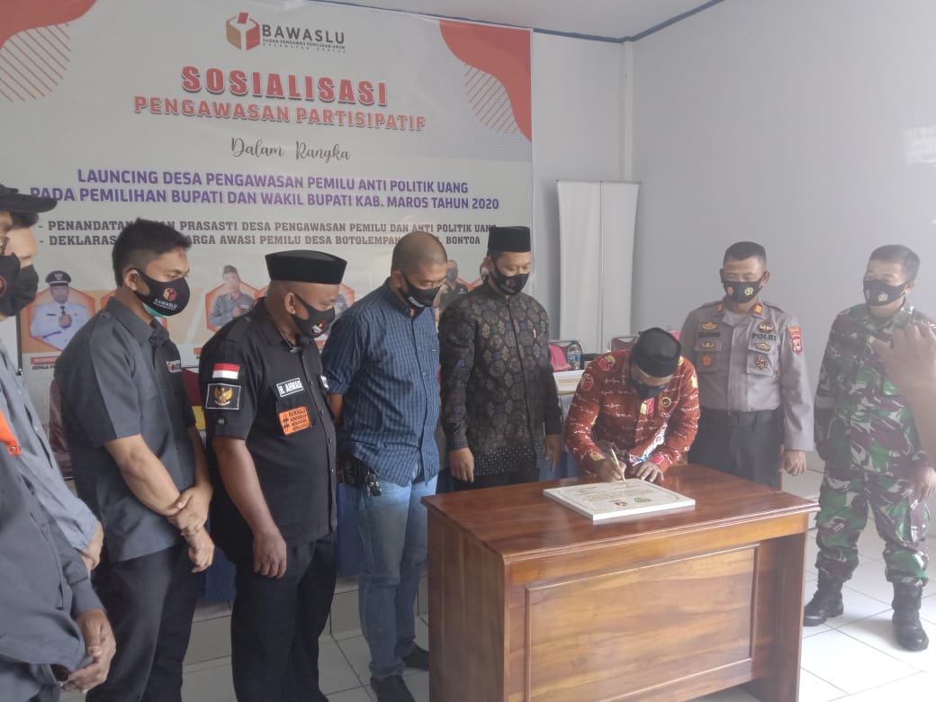 "Peluncuran ini atas dasar kesamaan pandangan antara Bawaslu dengan masyarakat desa Bontolempangan untuk bersama-sama mengawasi dan menolak politik uang serta praktik-praktik pelanggaran atau kecurangan lainnya," tambahnya.