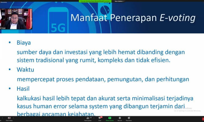Dia menilai di Indonesia sangat sulit diterapkan e-voting lantaran kendala geografis dan ketersediaan infrastruktur teknologi dan informasi. "Ke depan saya mendorong untuk bisa dilakukan atau saya setuju dengan ide pemerintah, ada namanya pemilu asimetris," ucapnya dalam diskusi virtual yang digelar Himpunan Mahasiswa Islam (HMI) dengan tema Proyeksi Kesiapan E-Vote dalam Pemilu di Indonesia, Kamis (12/8/2021).