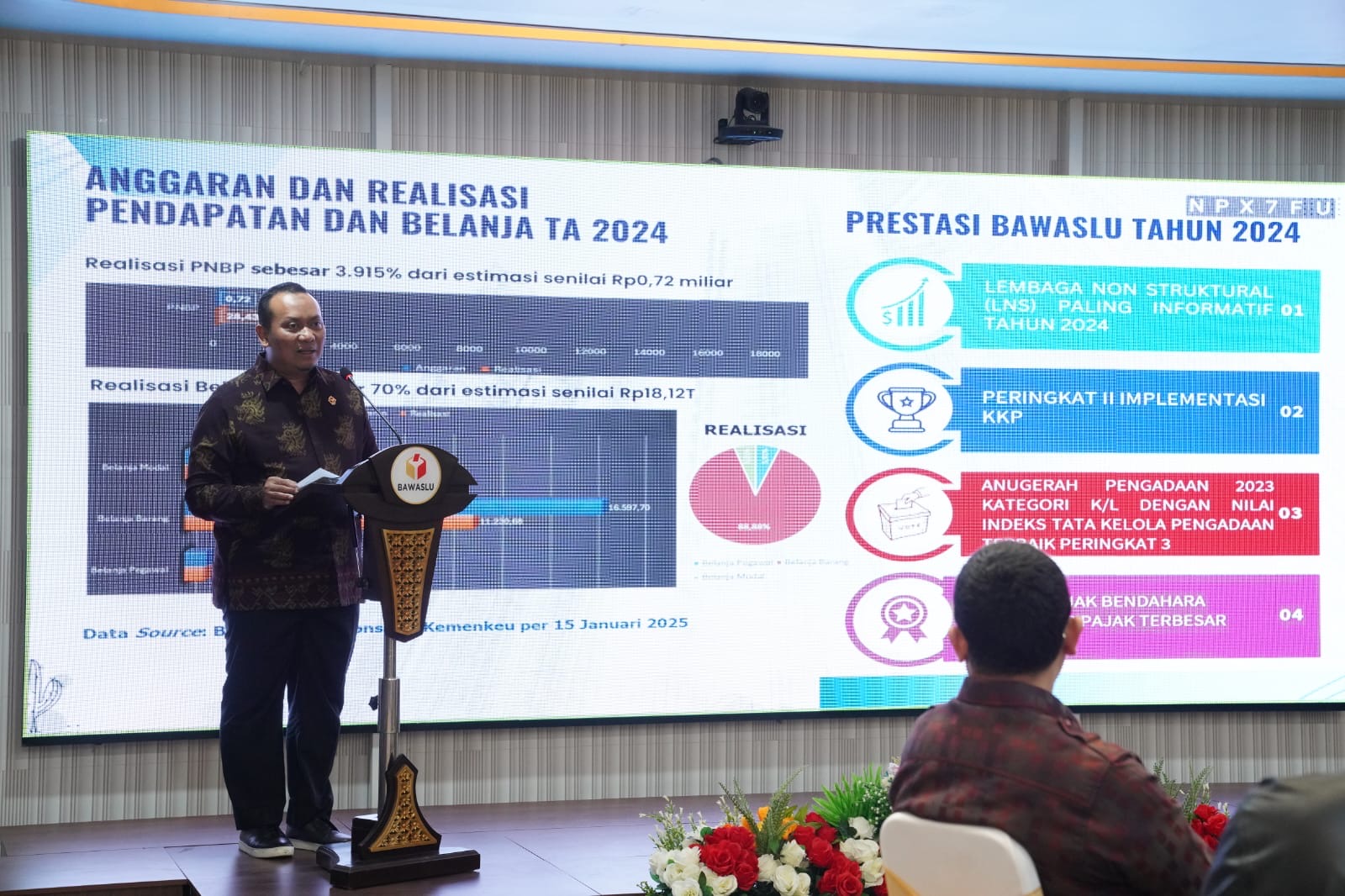 ”Tujuan pemeriksaan laporan keuangan untuk memberikan opini atas kewajaran laporan keuangan Bawaslu tahun anggaran 2024 dengan mempertimbangkan unsur kesesuaian, kecukupan, kepatuhan, dan efektivitas,” tuturnya.