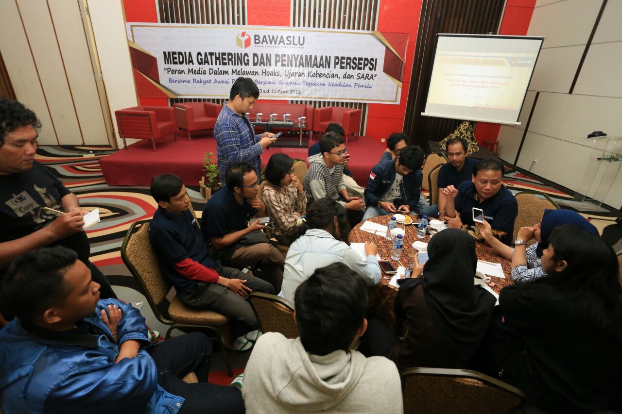 Kegiatan media gathering ini mengambil bentuk diskusi antara media dengan narasumber yang berasal dari Bawaslu, KPU, KPI, Dewan Pers, dan Kemenkominfo.