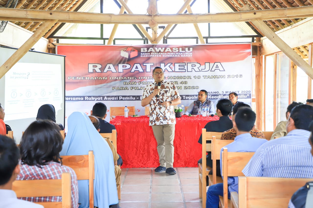 Anggota Bawaslu Fritz Edward Siregar saat menjadi narasumber dalam Rapat Kerja Penerapan Undang-Undang Nomor 10 Tahun 2010 tentang Pemilihan Gubernur, Bupati dan Walikota dan Peraturan Menteri Keuangan (PMK) tentang Pengelolaan Dana Alokasi Khusus Nonfisik di Kabupaten Sumbawa Barat, Provinsi Nusa Tenggara Barat, Selasa 3 Maret2020/Foto: Humas Bawaslu RI