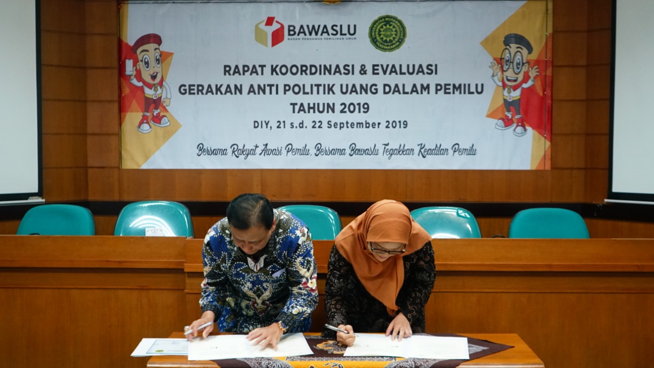 Yogyakarta- Badan Pengawas Pemilihan Umum - Demi menggaungkan gerakan anti politik uang, Bawaslu menggandeng Forum Dekan Fakultas Ilmu Sosial dan Ilmu Politik (FISIP) Perguruan Tinggi Muhammadiyah (PTM) se-Indonesia. Menurut Ketua Bawaslu Abhan, pemberantasan korupsi sedianya dimulai dari menangkal politik uang dalam proses demokrasi, termasuk Pilkada Serentak 2020.