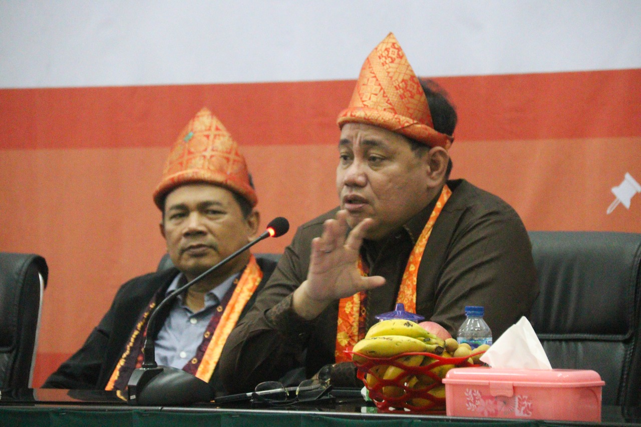 Anggota Bawaslu Herwyn JH. Malonda aat membuka kegiatan Rapat Kerja Penyusunan Anggaran dan Pelaporan Keuangan pada Sekretariat Bawaslu Provinsi dan Sekretariat Bawaslu Kabupaten/Kota Se-Sumsel yang bertempat di Ruang Auditorium Bawaslu Sumsel pada Selasa (12/7/2022)/foto: Humas Bawaslu Sumsel