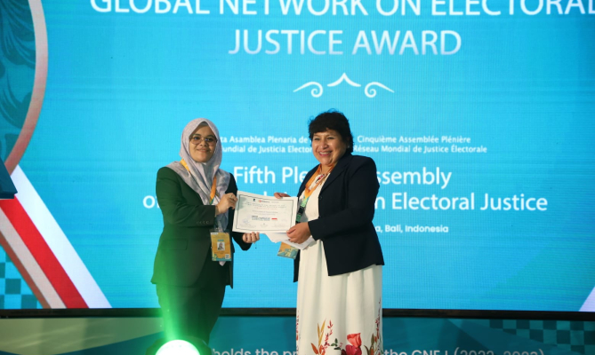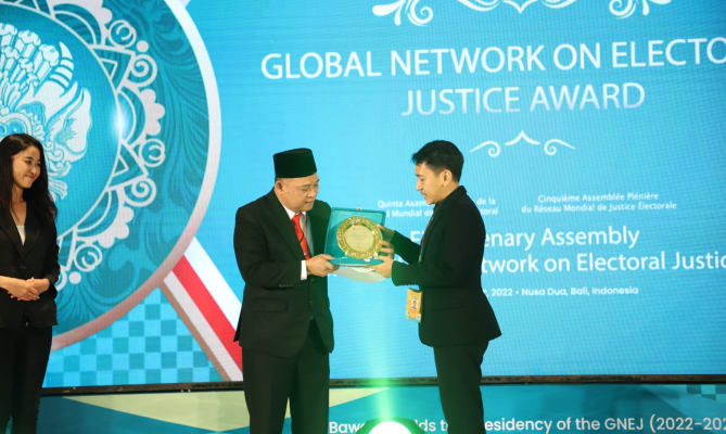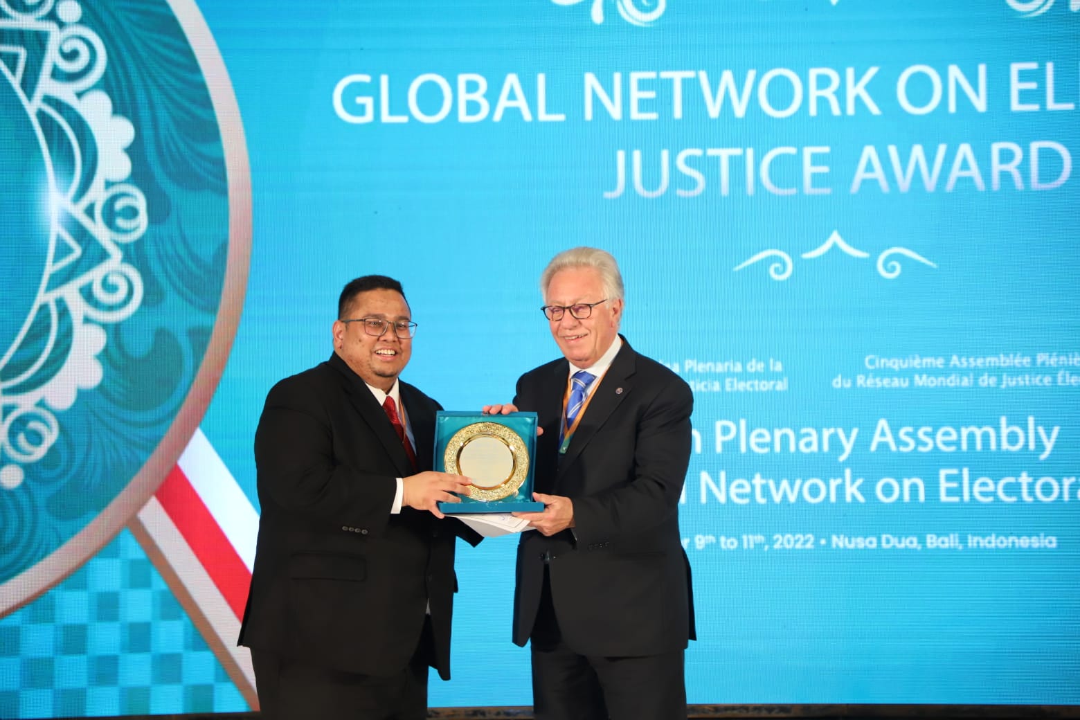 Bali, Badan Pengawas Pemilihan Umum - Sebagai presidensi Global Network on Electoral Justice (GNEJ, Bawaslu memberikan penghargaan dengan lima kategori dalam ajang GNEJ 'Award'.  Pemberiaan penghargaan tersebut diserahkan saat Sidang Pleno Kelima (Fifth Plenary Assembly) of the Global Network on Electoral Justice secara hybrid, Senin (10/10/2022) di Bali.