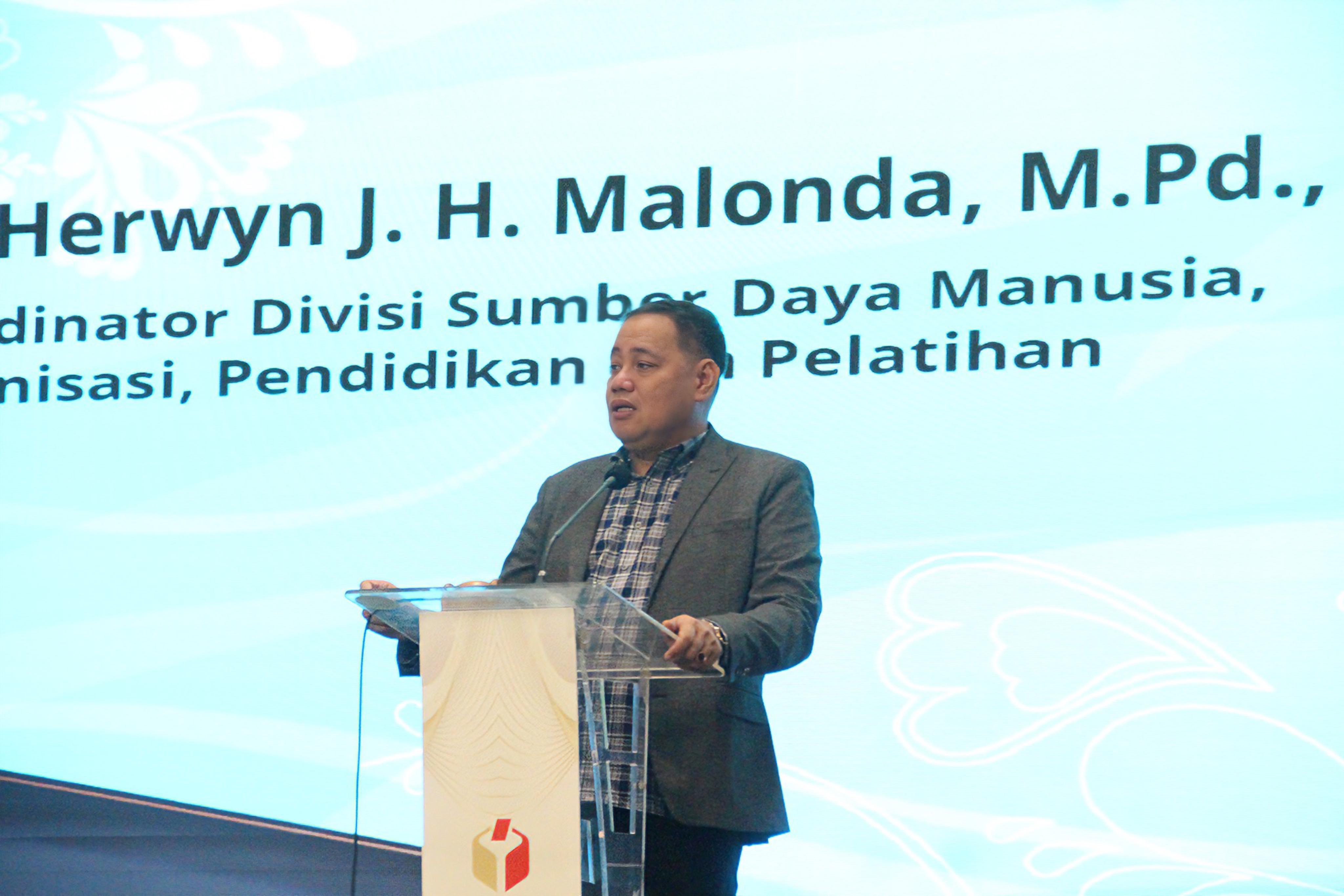 Anggota Bawaslu Herwyn JH Malonda saat membuka kegiatan Rapat Integrasi Serta Validasi Data Pengawas Pemilu Adhoc pada Pemilu Serentak 2024 Gelombang II, Minggu (8/9/2024).