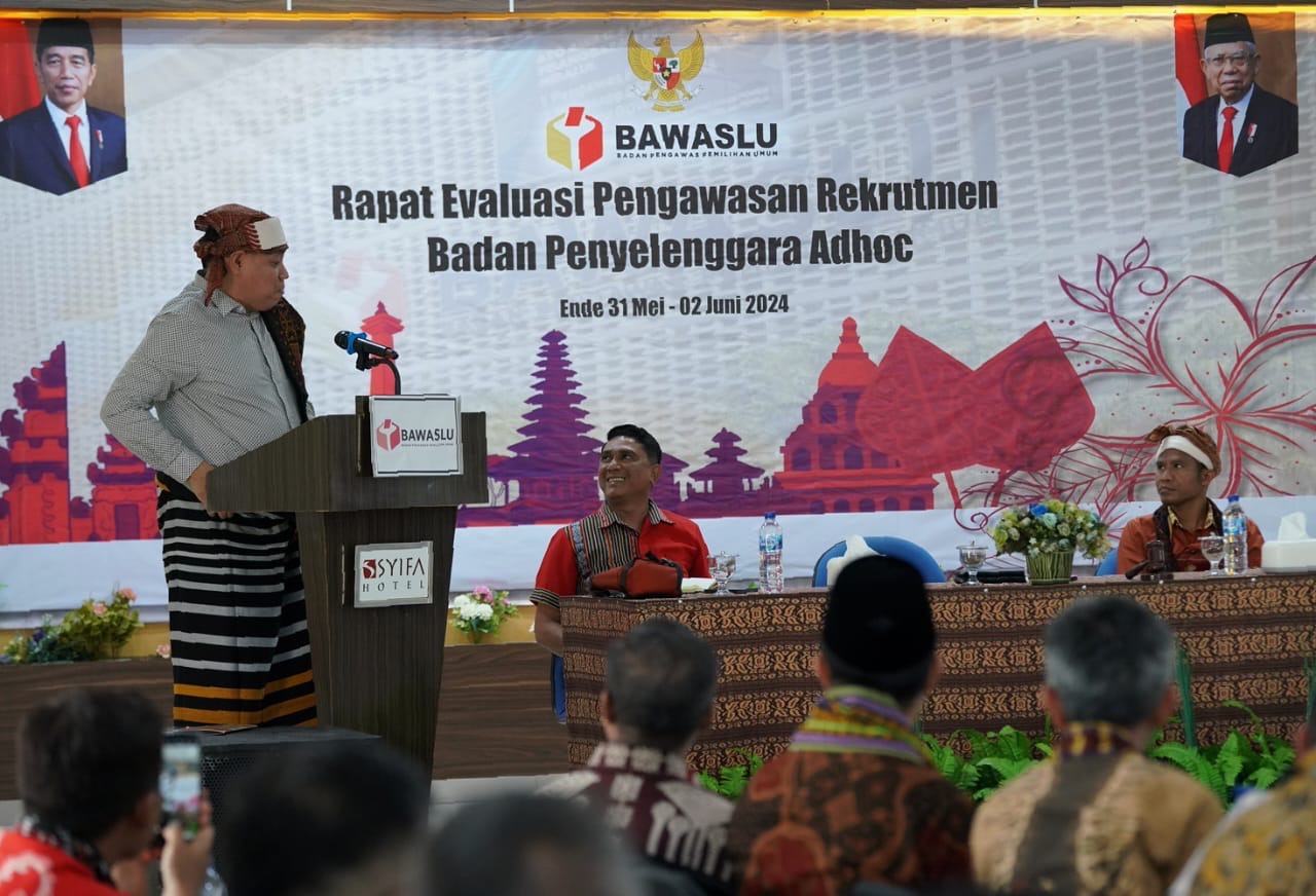 Anggota Bawaslu Herwyn JH Malonda saat membuka Rapat Evaluasi Pengawasan Rekrutmen Badan Penyelenggara Ad hoc yang dihadiri Bawaslu Provinsi di Kabupaten Ende, Provinsi Nusa Tenggara Timur, Sabtu (1/6/2024).