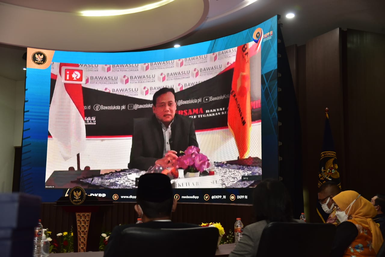 Ketua Bawaslu Abhan saat memberikan sambutan dalam perayaan ulang tahun kesembilan DKPP secara daring (dalam jaringan), Senin 14 Juni 2021/Foto: Rama Agusta (Pemberitaan dan Publikasi Bawaslu RI)