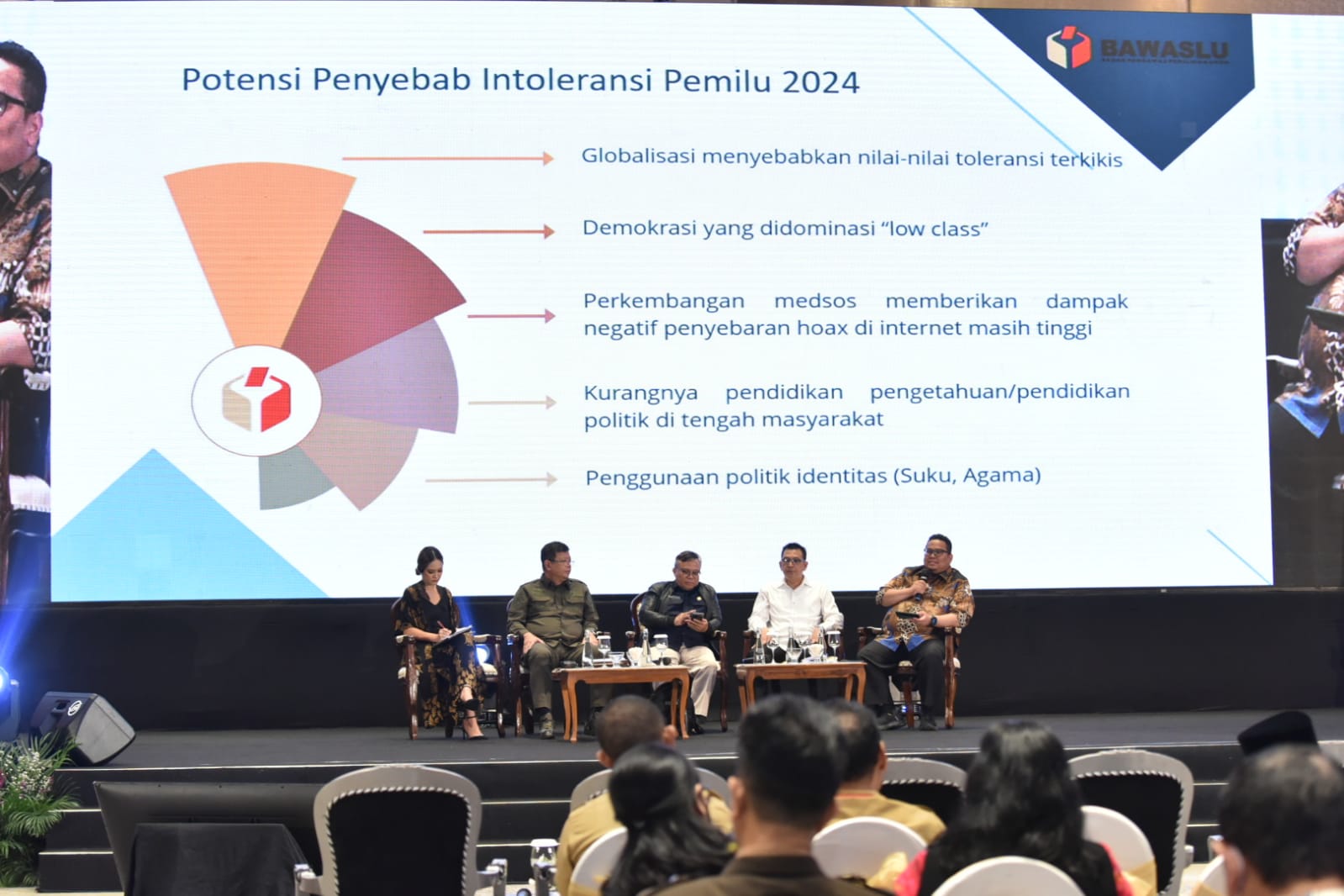 Dalam kesempatan tersebut, Bagja menuturkan potensi intoleransi berasal dari globalisasi yang menyebabkan nilai-nilai toleransi terkikis, lalu demokrasi yang didominasi masyarakat kelas menengah. Selain itu menurutnya, perihal perkembangan media sosial (medsos) juga memberikan dampak negatif penyebaran hoaks di internet masih tinggi.