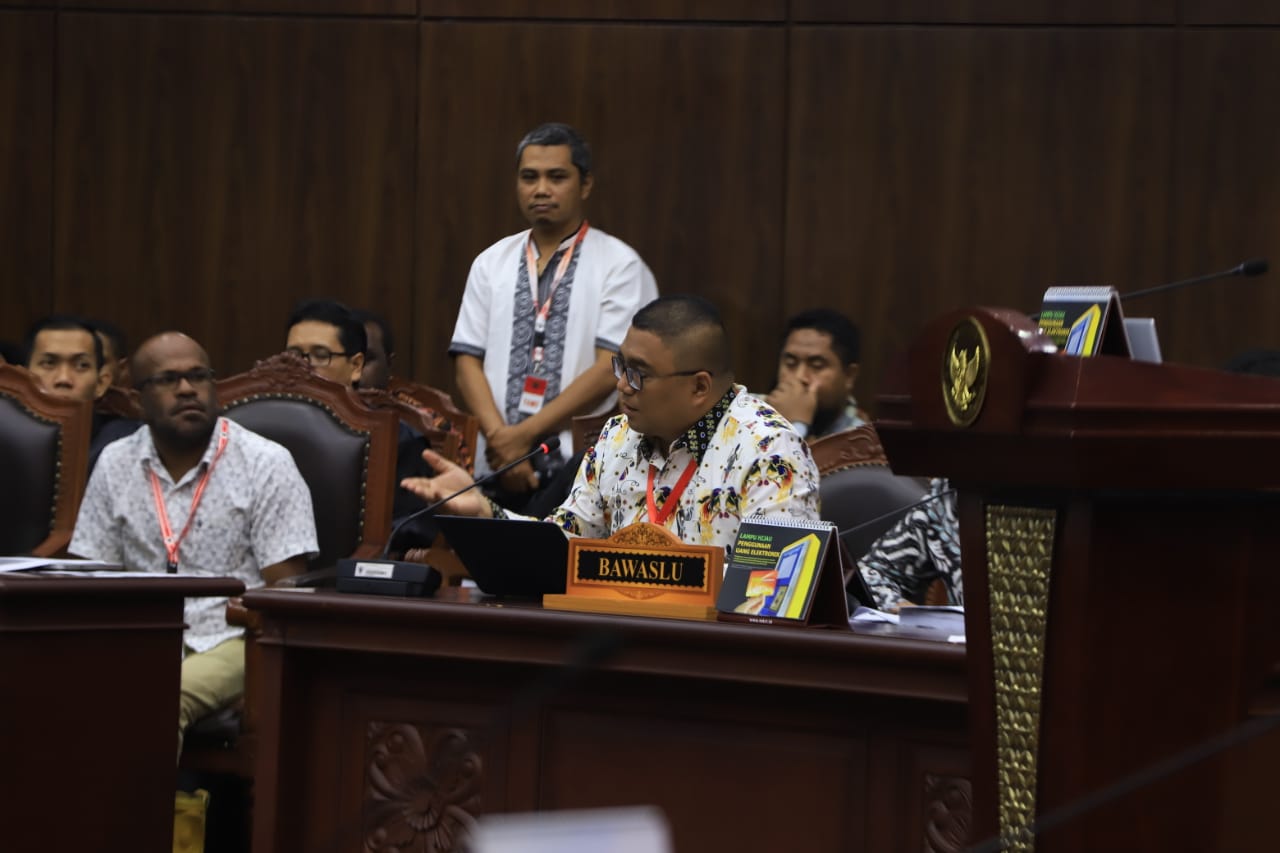 Anggota Bawaslu Fritz Edward Siregar saat memberikan keterangan kepada Hakim MK terkait permohonan Nomor 119-12-34/PHPU.DPR-DPRD/XVII/2019 untuk sengketa hasil pileg wilayah Papua Barat di Gedung MK, Jakarta, Jumat 26 Juli 2019/Foto: Jaa Rizka Pradana