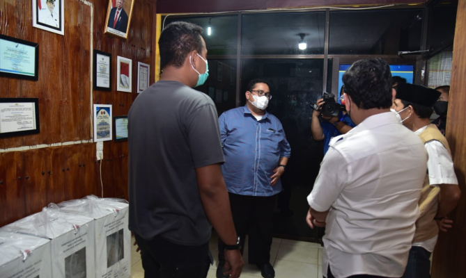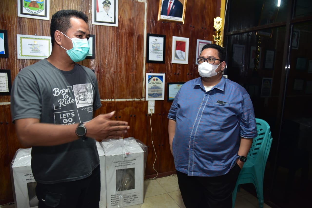 Jambi, Badan Pengawas Pemilihan Umum - Dalam patroli pengawasan jelang pemungutan suara ulang (PSU) Pemilihan Gubernur dan Wakil Gubernur (Pilgub) Jambi 2020, Anggota Bawaslu Rahmat Bagja menemukan kotak suara dan surat suara untuk TPS 19 yang terdapat di RT 22, Desa Mendalo Darat, Kecamatan Jambi Luar Kota, Kabupaten Muaro Jambi masih disimpan di balai desa.